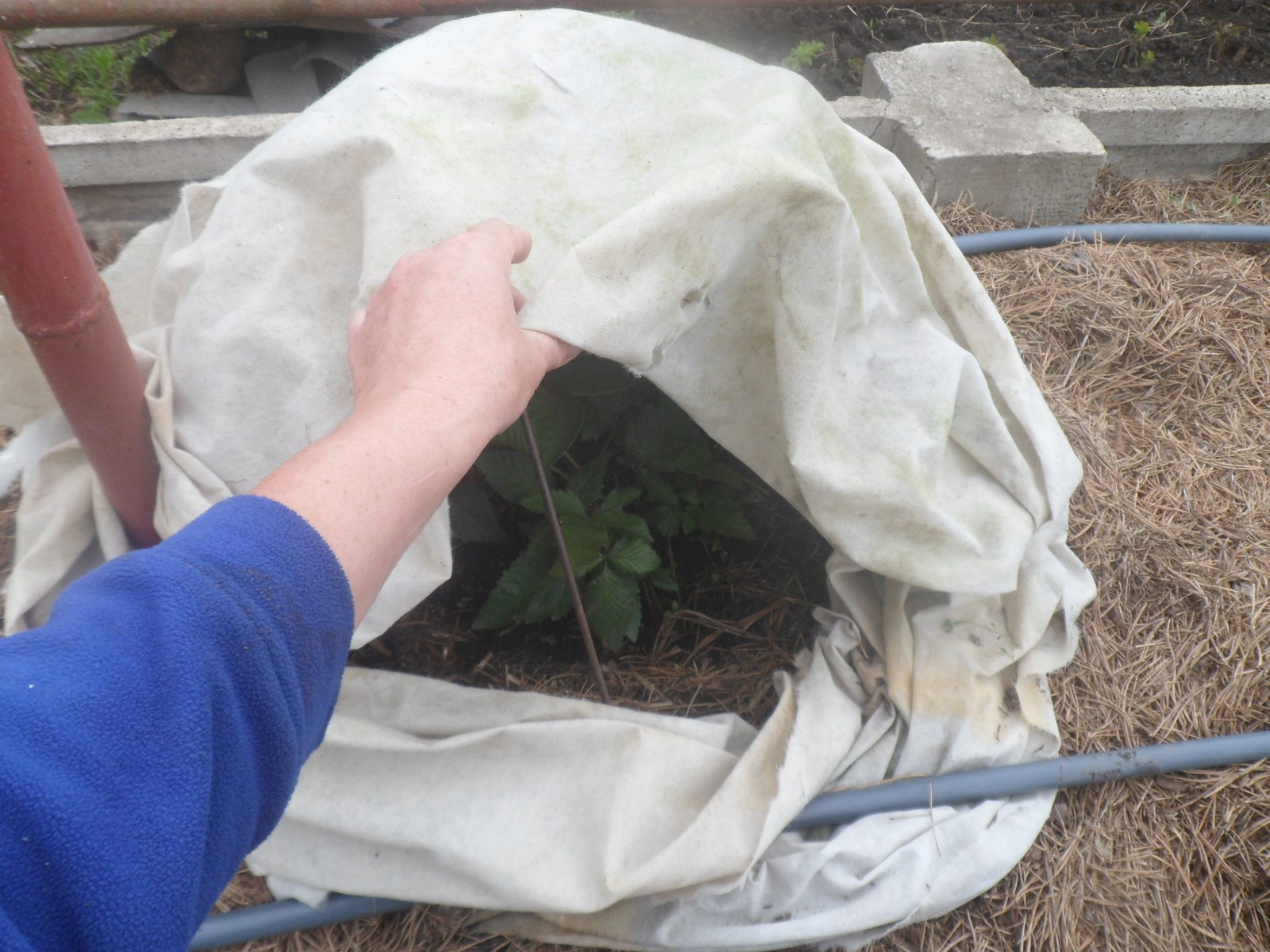 6). Весь сезон ежевичные кусты набирают силу а на зиму двухлетние кусты укрывают белым, спанбондом, плотностью 60 гр. на кв. м.