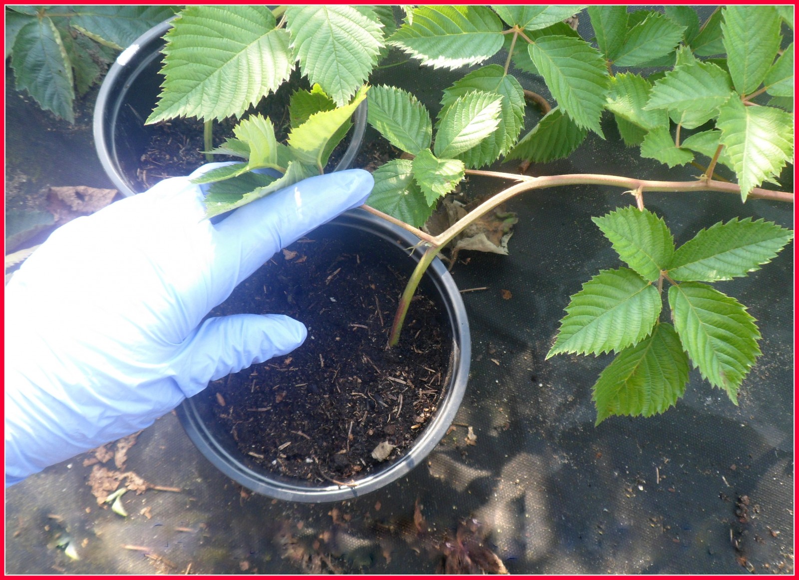 12). Для размножения ежевики в средине августа верхушки молодых однолетних побегов прищипывают и прикапывают в горшки с субстратом. Очень важно в этот период следить за поливом, горшки не должны оставаться сухими. Спустя полтора-два месяца верхушка побега обрастает корневой системой и ее можно отделять от маточного куста. Лучше это сделать весной.
